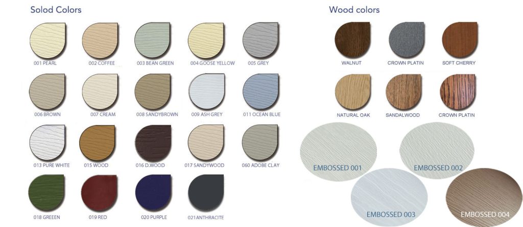 Types of siding and accessories offer 13 colors in the color chart and can be customizable in color.